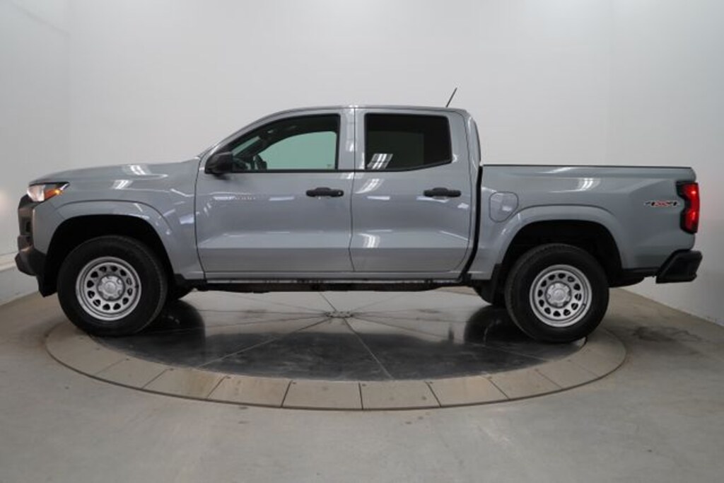 One Owner, Clean Carfax / No Accidents Reported, Bluetooth/CellPhone, Back Up Camera, 4X4, 4-Way Manual Passenger Seat Adjuster, 4-Wheel Disc Brakes, 6-Speaker Audio System Feature, 6-Way Manual Driver Seat Adjuster, ABS brakes, Air Conditioning, AM/FM radio: SiriusXM, Apple CarPlay/Android Auto, Auto High-beam Headlights, Automatic Emergency Braking, Brake assist, Chevy Safety Assist, Cloth Seat Trim, Driver door bin, Driver vanity mirror, Dual front impact airbags, Dual front side impact airbags, Electronic Stability Control, Emergency communication system: OnStar, Following Distance Indicator, Forward Collision Alert, Front anti-roll bar, Front Bucket Seats, Front Center Armrest, Front Pedestrian & Bicyclist Braking, Front wheel independent suspension, Heated door mirrors, IntelliBeam Automatic High Beam On/Off, Lane Keep Assist w/Lane Departure Warning, Low tire pressure warning, Navigation System, Occupant sensing airbag, Overhead airbag, Panic alarm, Passenger door bin, Passenger vanity mirror, Power door mirrors, Power steering, Power windows, Preferred Equipment Group 4WT, Radio: 11.3" Diagonal Advanced Color LCD Display, Rear window defroster, Remote keyless entry, SiriusXM Trial Subscription, Speed-sensing steering, Split folding rear seat, Steering Wheel Mounted Audio Controls, Steering wheel mounted audio controls, Tachometer, Tilt steering wheel, Traction control, Trip computer, Variably intermittent wipers, Wheels: 17" x 8" Ultra Silver Metallic Steel, Wireless Phone Projection. 2025 Chevrolet Colorado 4D Crew Cab Work Truck 4WD 8-Speed Automatic 2.7L I4 Turbocharged DOHC 16V LEV3-ULEV50 310hp Sterling Gray Metallic